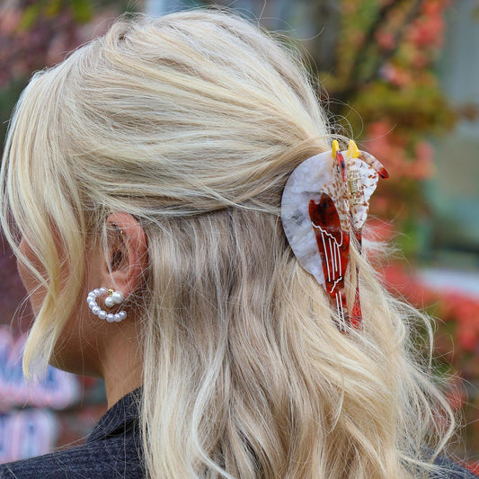 Silkehale Hårklemme - Råhvid/Rødbrun