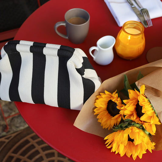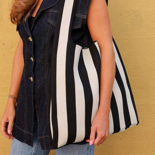 Olivia Taske - Råhvid/Sort Stribet (FORUDBESTILLING)