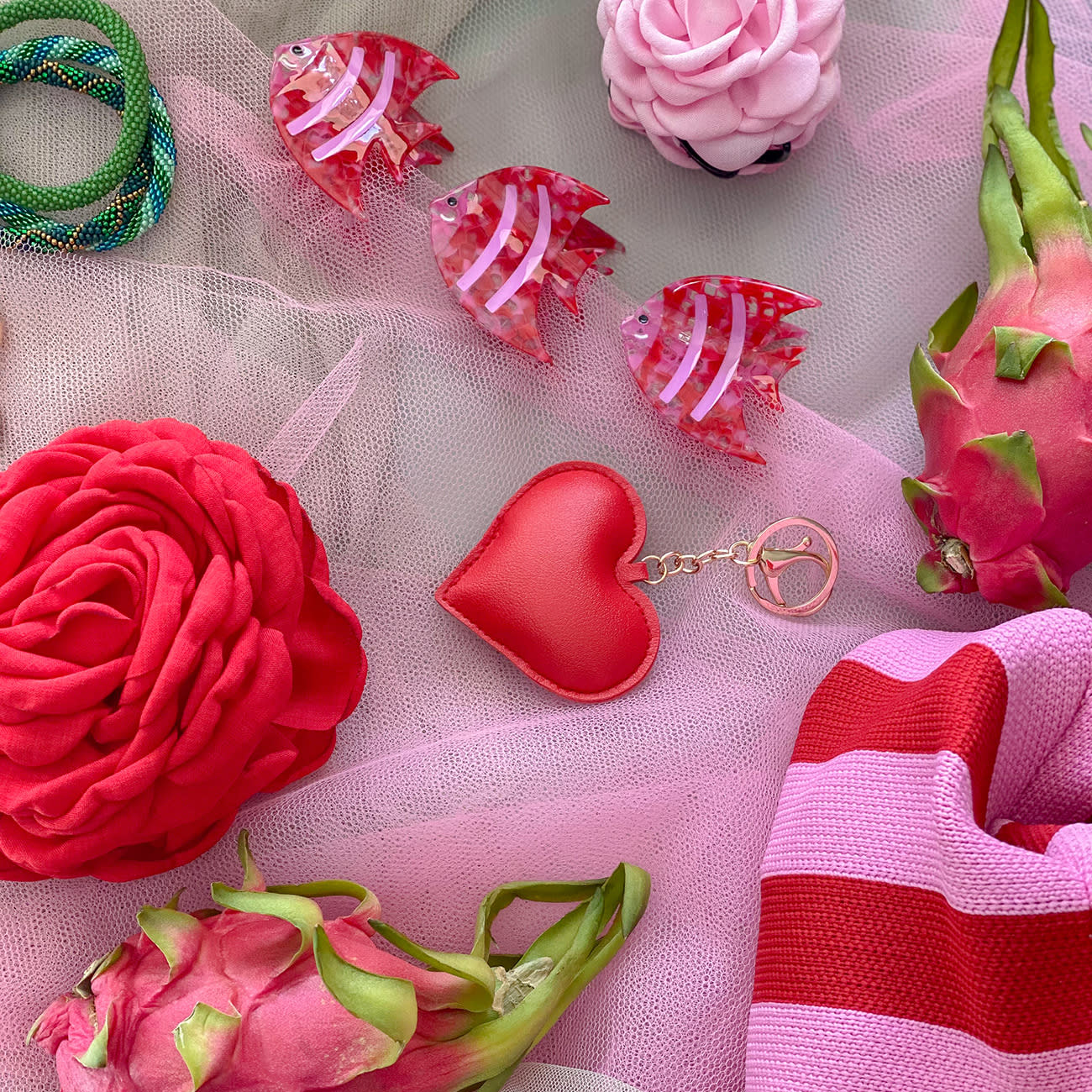 En nøglering i hjerternes tegn. Vores Amina nøglering er formet som et hjerte, som tilføjer en sød detalje til dit nøglebundt.