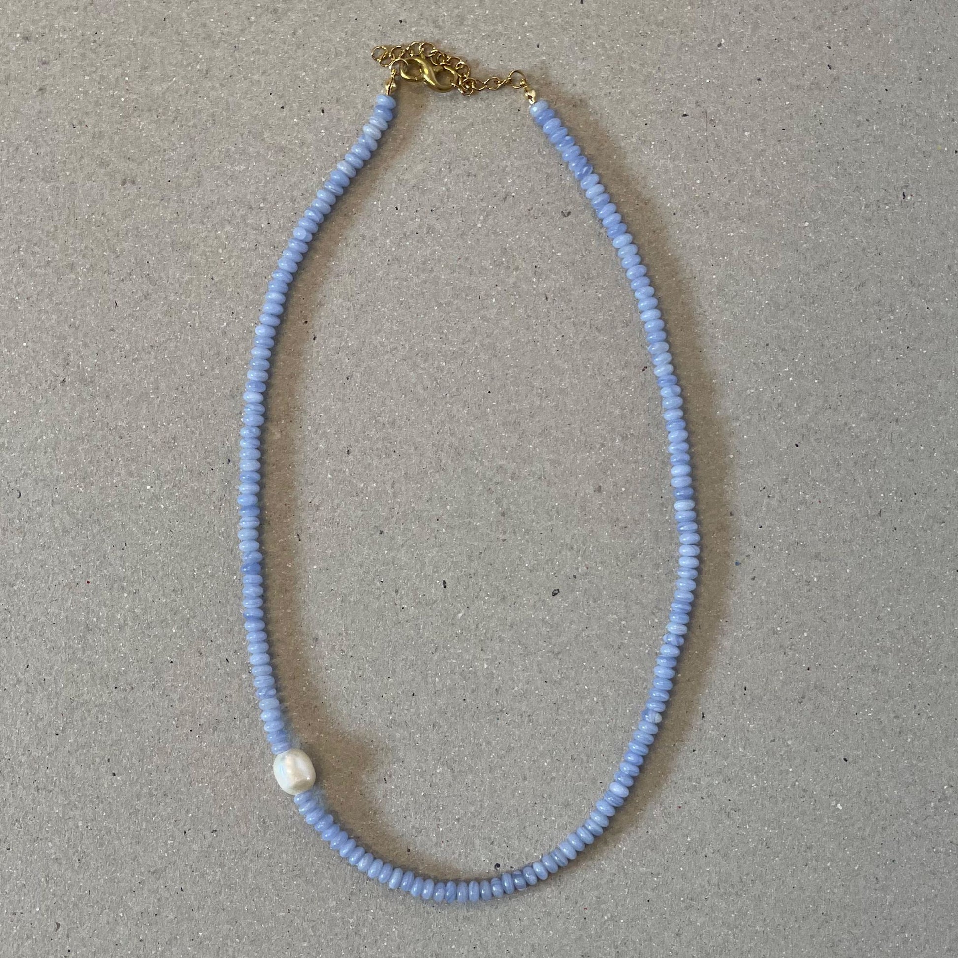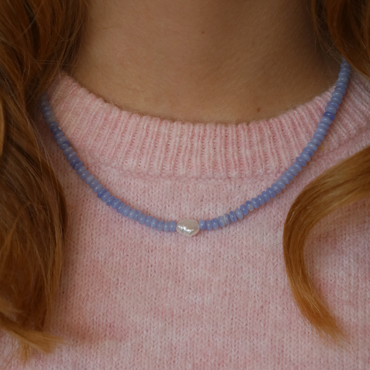 Anitta halskæde er udsmykket med små farverige perler og en enkelt ferskvandsperle.