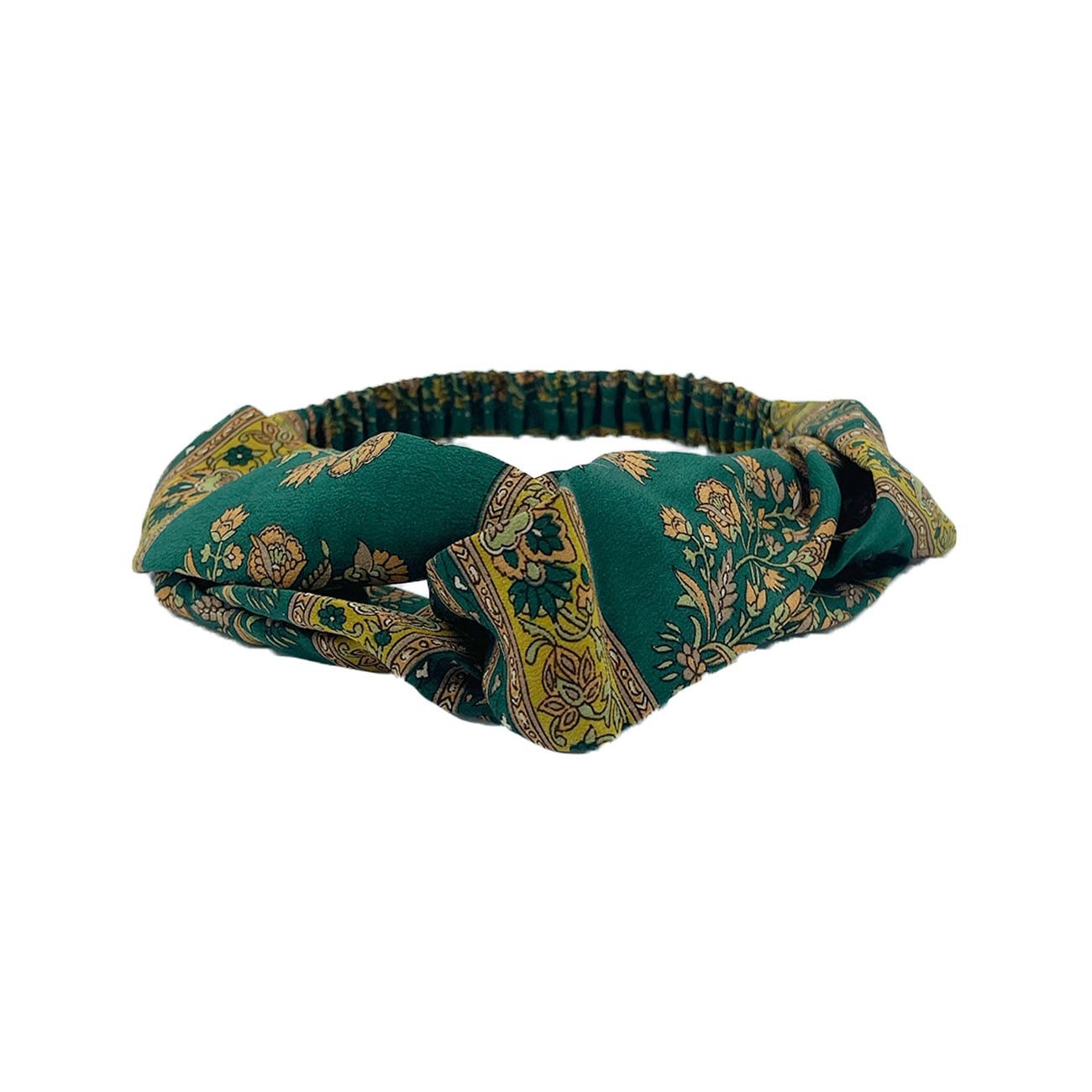 Smukt hårbånd syet af genbrugte indiske silkesarier. Hårbåndet er unika, da der kun findes et meget begrænset antal af hver style.