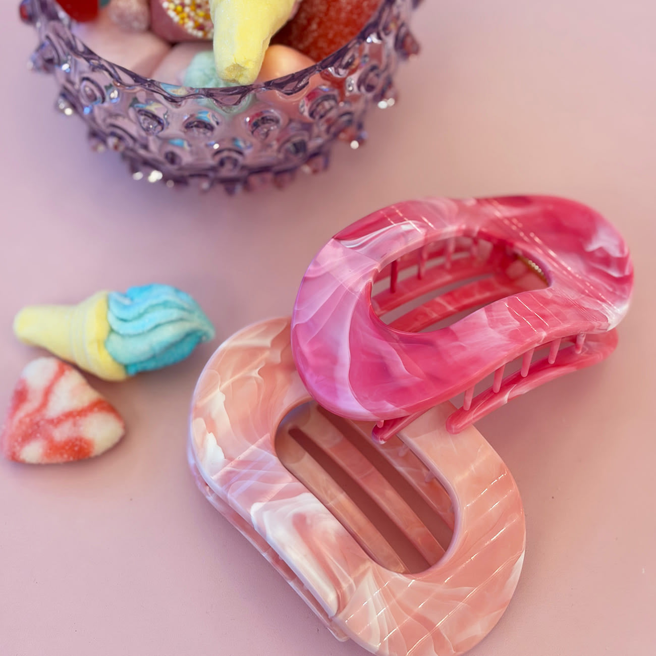Eva Hårklemme - Mellem - Marmor Pink/Hvid