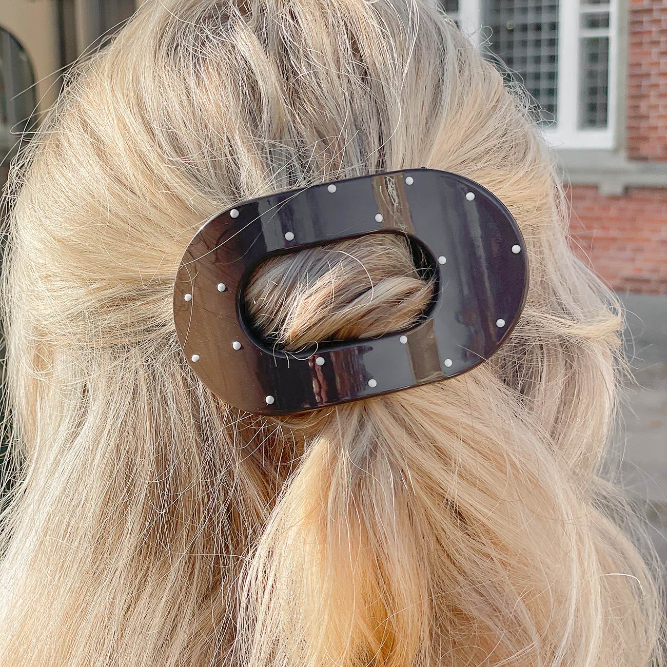 Eva Hårklemme - Mørkebrun/Hvid Prikker (FORUDBESTILLING)