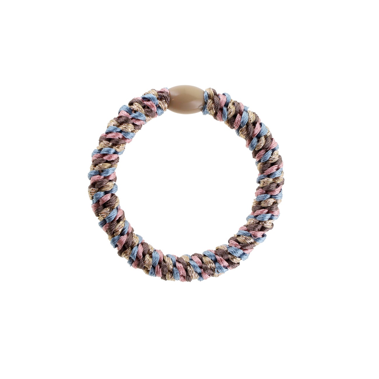 Flettet Hårelastik - Multi Brun/Blå/Rosa