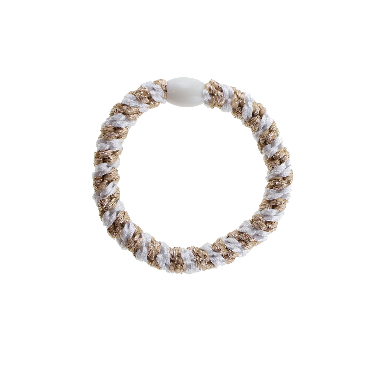 Flettet Hårelastik - Multi Hvid/Guld Glitter