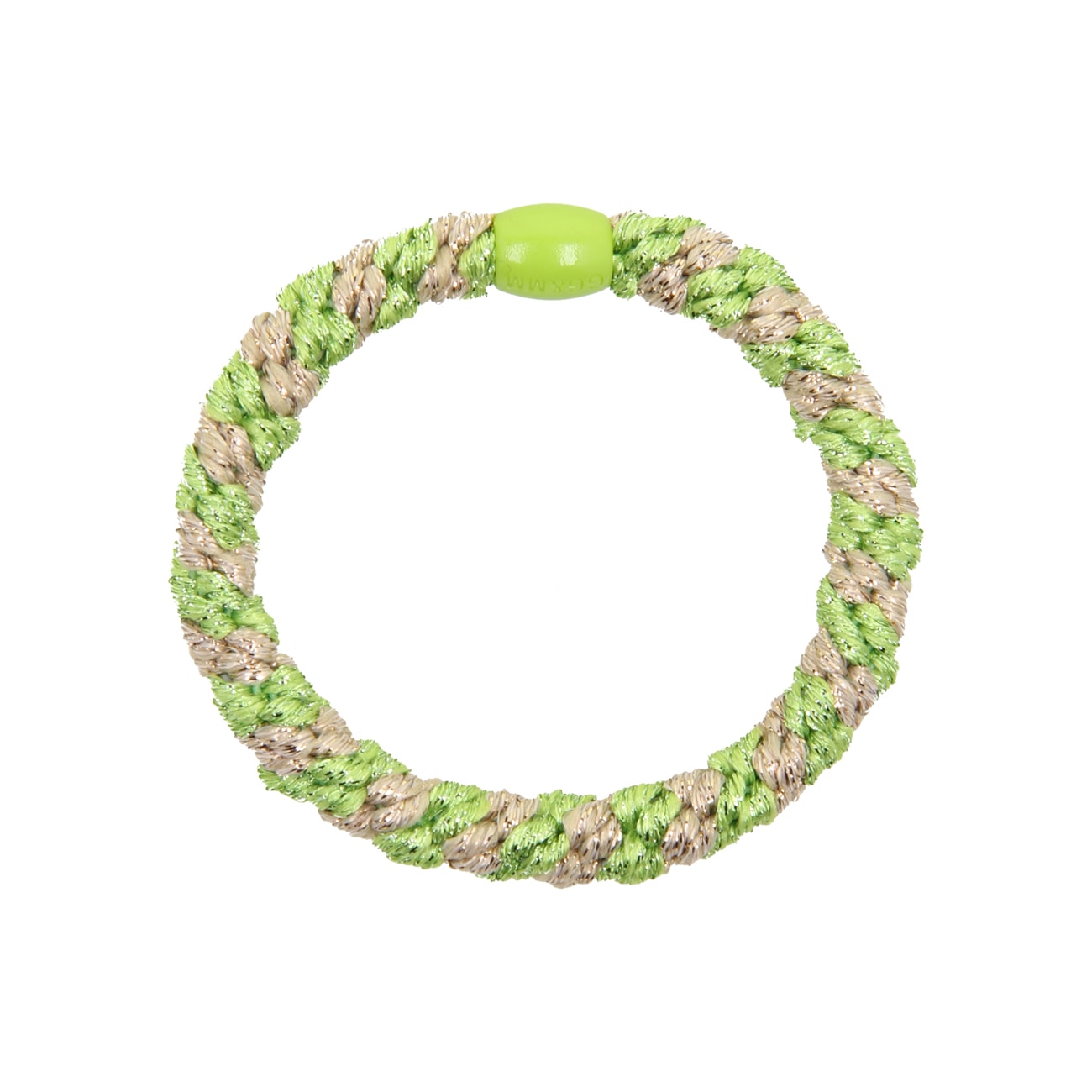 Flettet Hårelastik - Multi Lysegrøn/Beige glitter