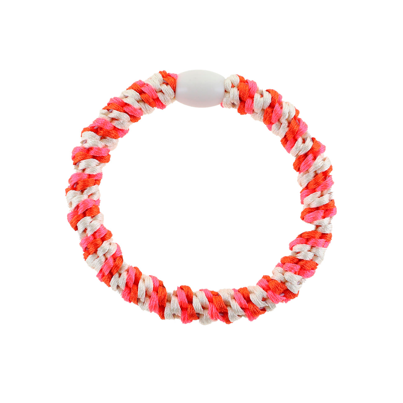 Flettet Hårelastik - Neon Pink/Rød/Råhvid