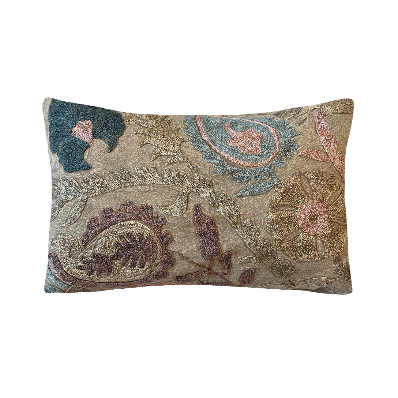Vores Juliette suzani pudebetræk fås med rosa og brun grundfarve, hvorpå de er pyntet med de smukkeste suzani broderier i skønne farver. Pudebetrækkene er unikke, så der findes kun ét af hvert pudebetræk.