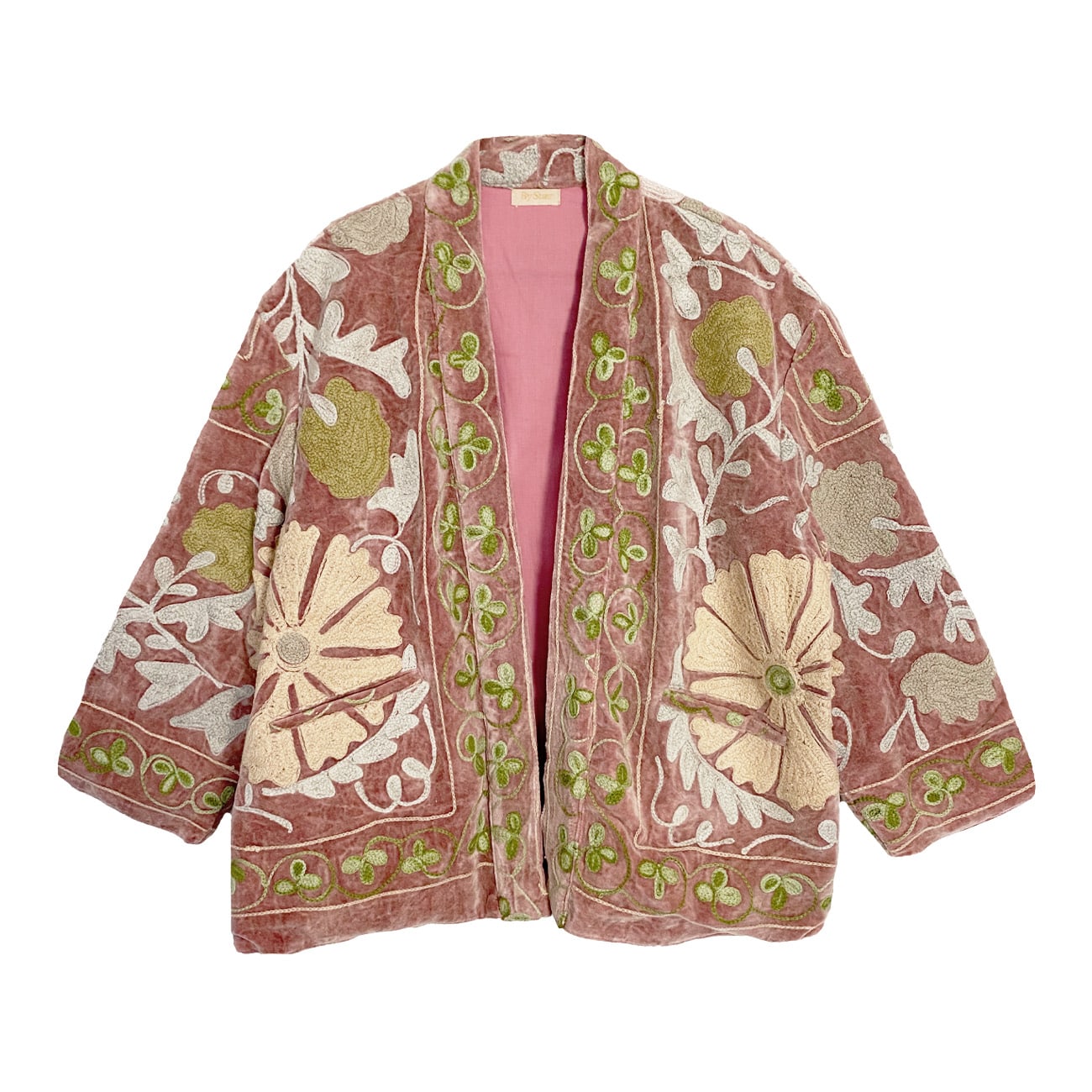 Vores Manett velour jakke er udsmykket med de fineste suzani mønstre i forskellige farver. Hver jakke er unik, så der findes kun én af hver.