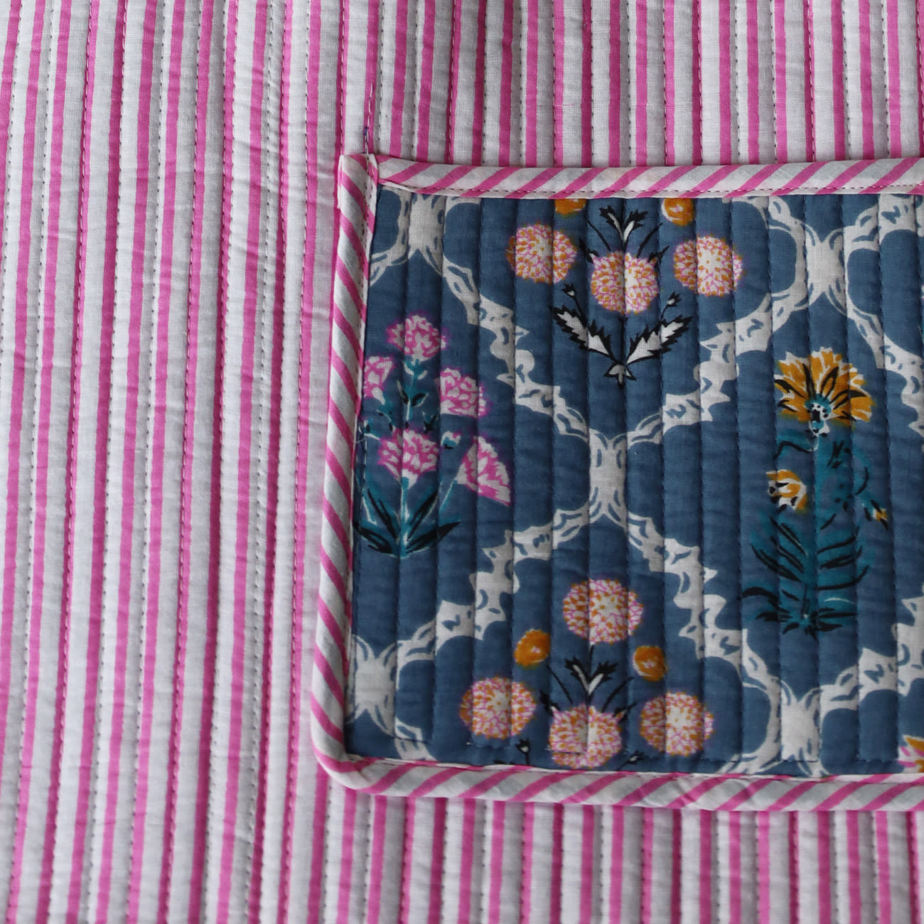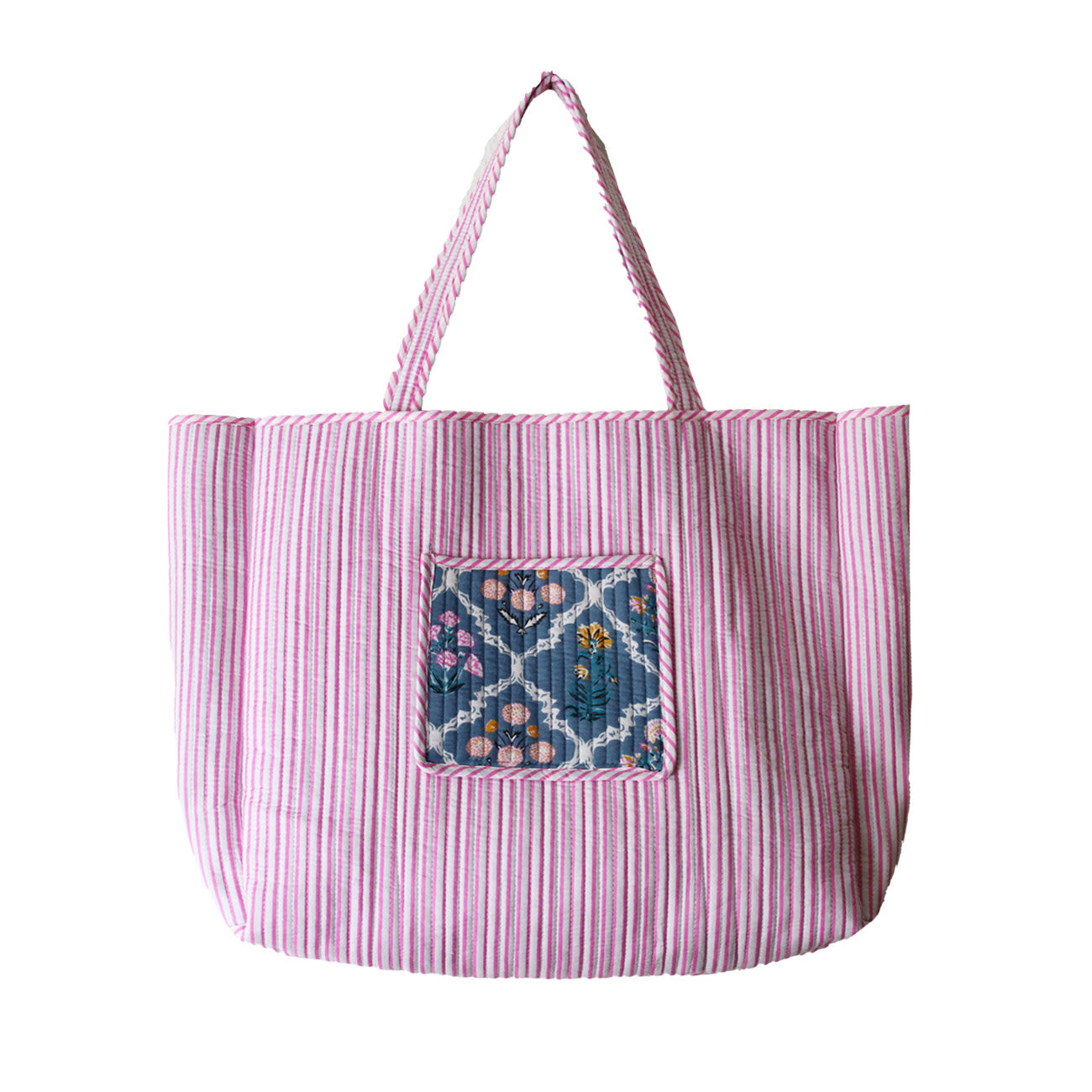 Vores Mille taske er et stort og rummelig net uden lukning. Tasken er vendbare med forskellige mønstre/farver på inderside og yderside.