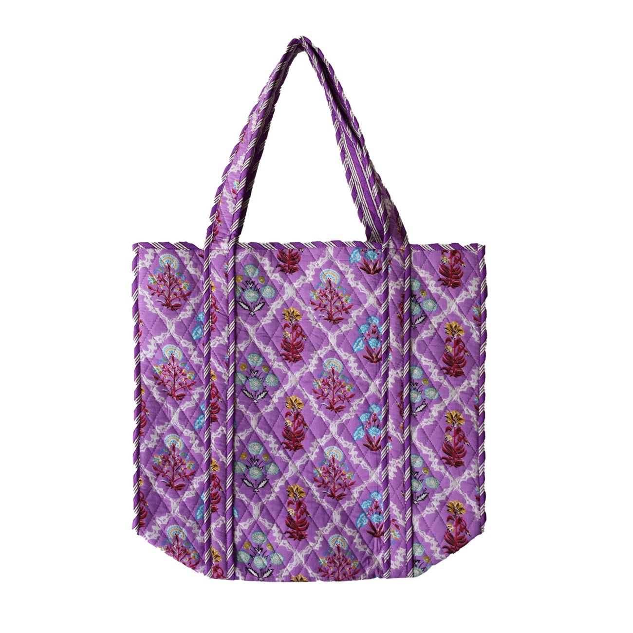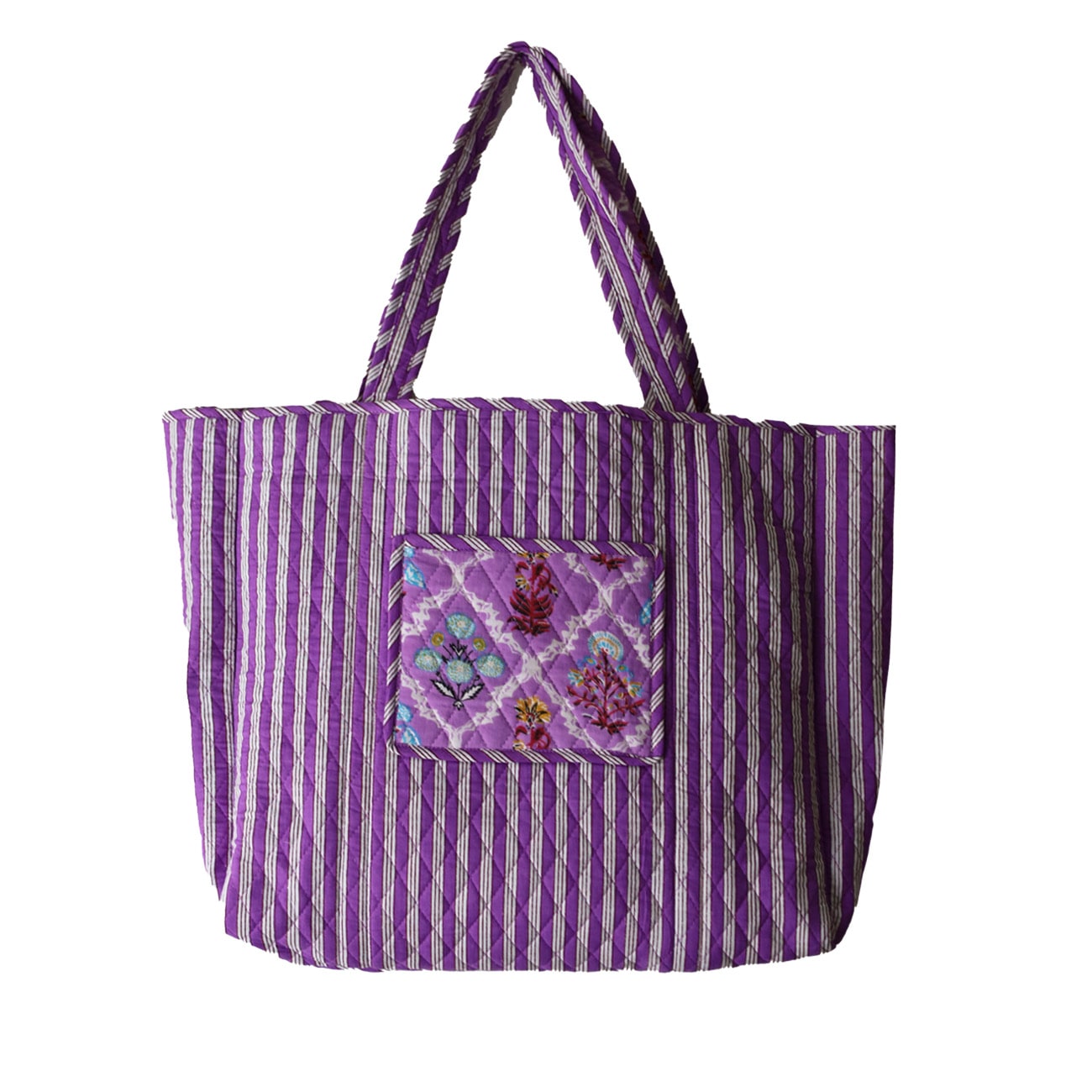 Vores Mille taske er et stort og rummelig net uden lukning. Tasken er vendbare med forskellige mønstre/farver på inderside og yderside.