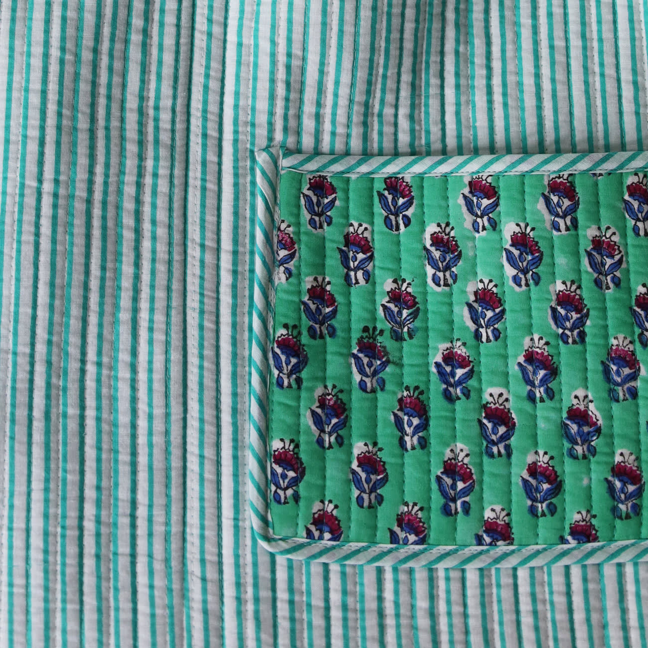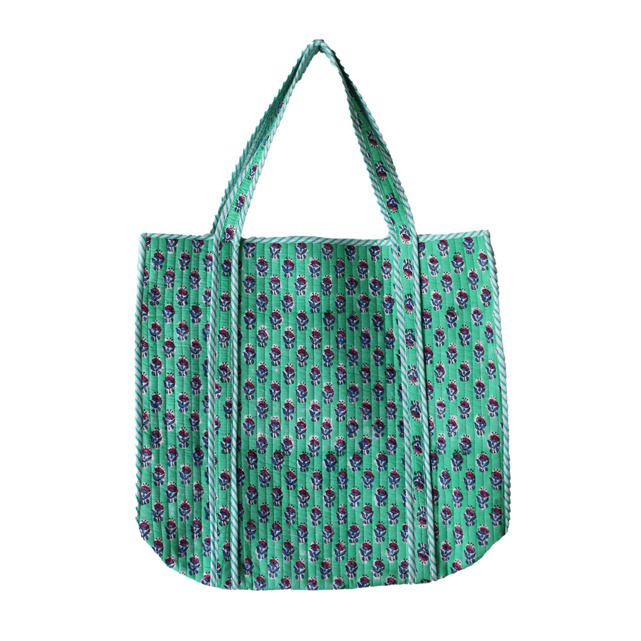 Vores Mille taske er et stort og rummelig net uden lukning. Tasken er vendbare med forskellige mønstre/farver på inderside og yderside.