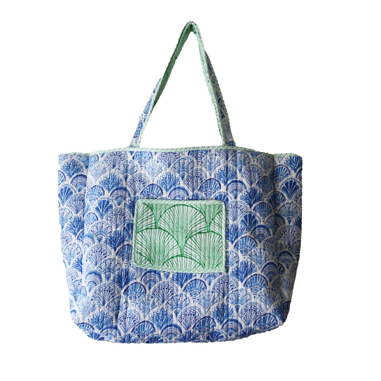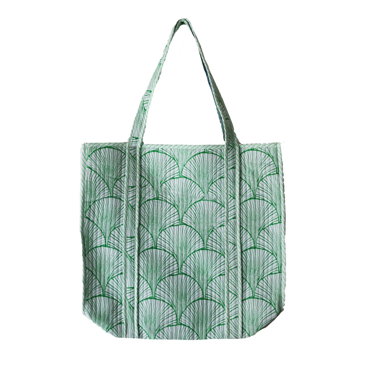Vores Mille taske er et stort og rummelig net uden lukning. Tasken er vendbare med forskellige mønstre/farver på inderside og yderside.
