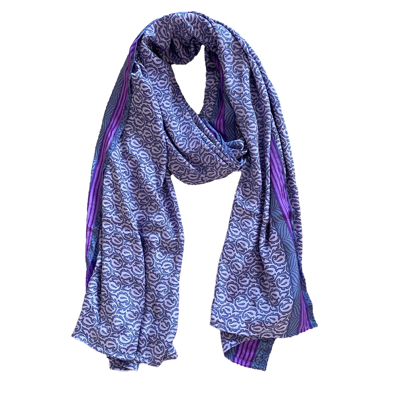 Vores Noa tørklæder er unikke, og der findes kun ét eller meget få af hver. De er produceret af sarier fra Indien, så der kan forekomme variationer i mønstrene.