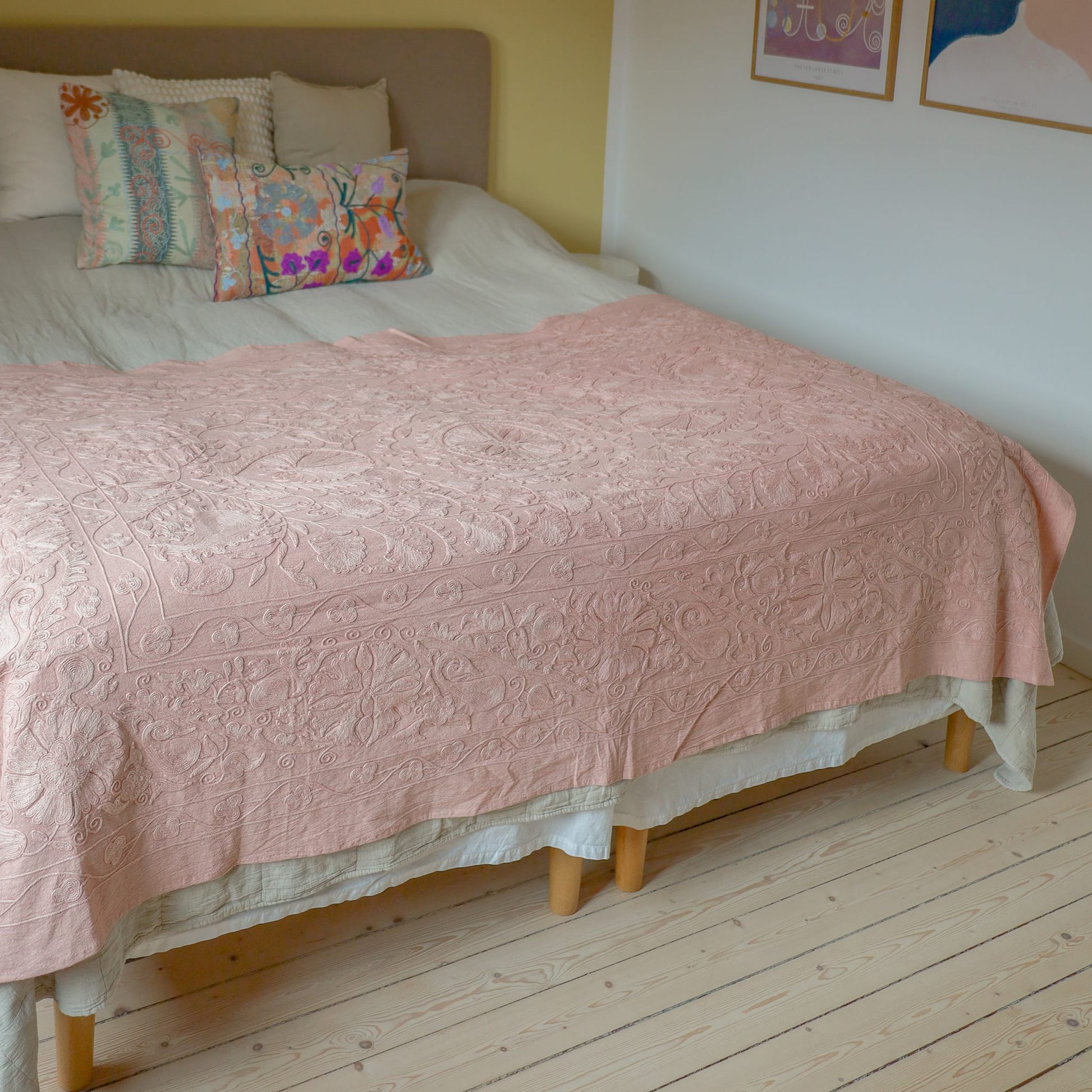 Unikt tæppe med smukke broderier. Renses, tåler ikke maskinvask. Mål: 150 x 225 cm