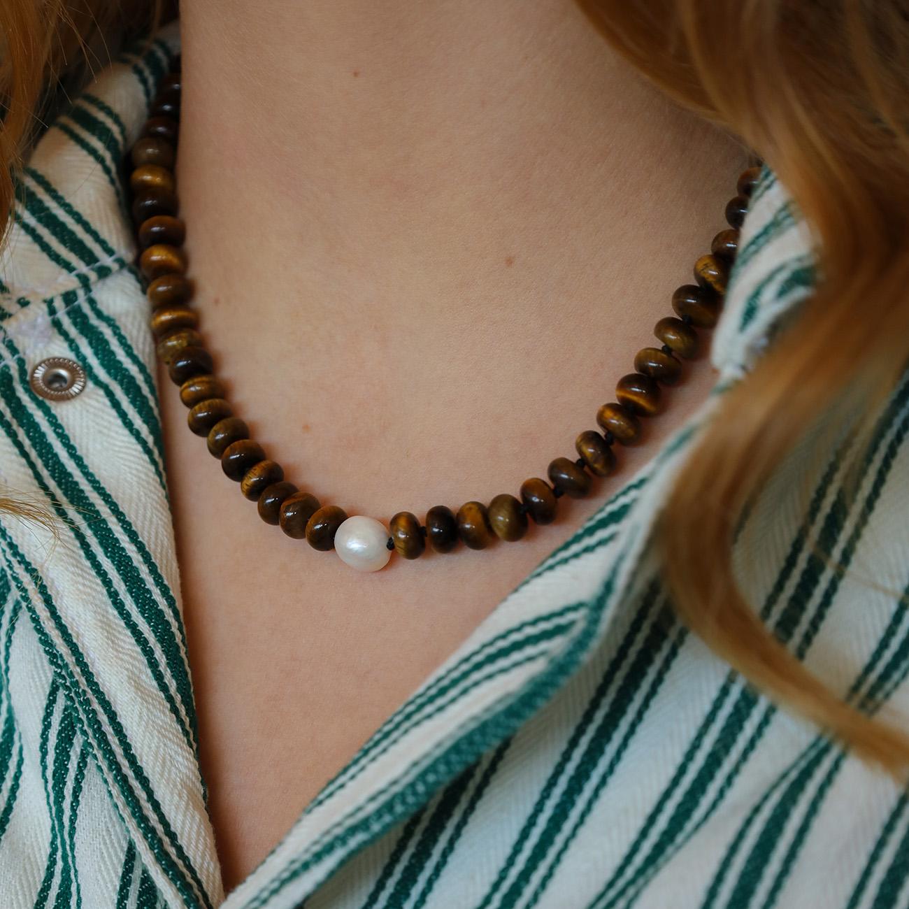 Salina halskæde har udsmykket med perler i et ensfarvet mix og en smuk ferskvandsperle.