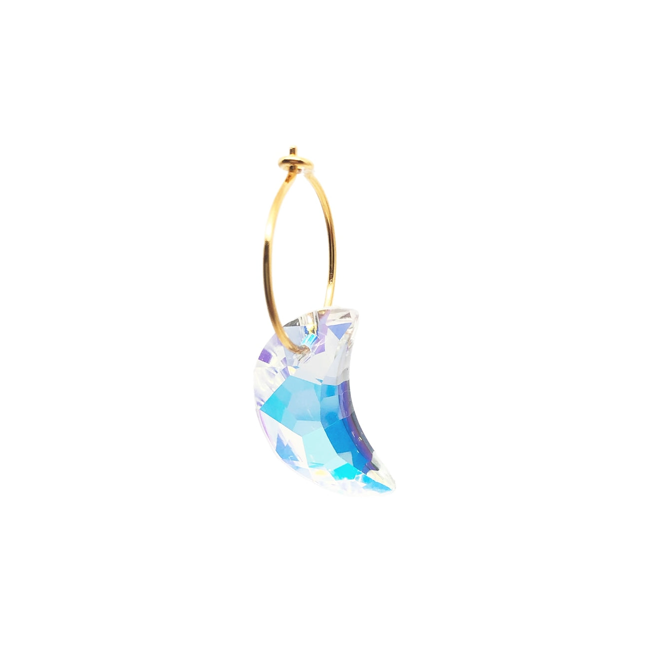 Vores Trine ørering sælges enkeltvis. Øreringen er forgyldt, og vedhænget skifter farver afhængigt af, hvordan lyset afspejles i øreringen.