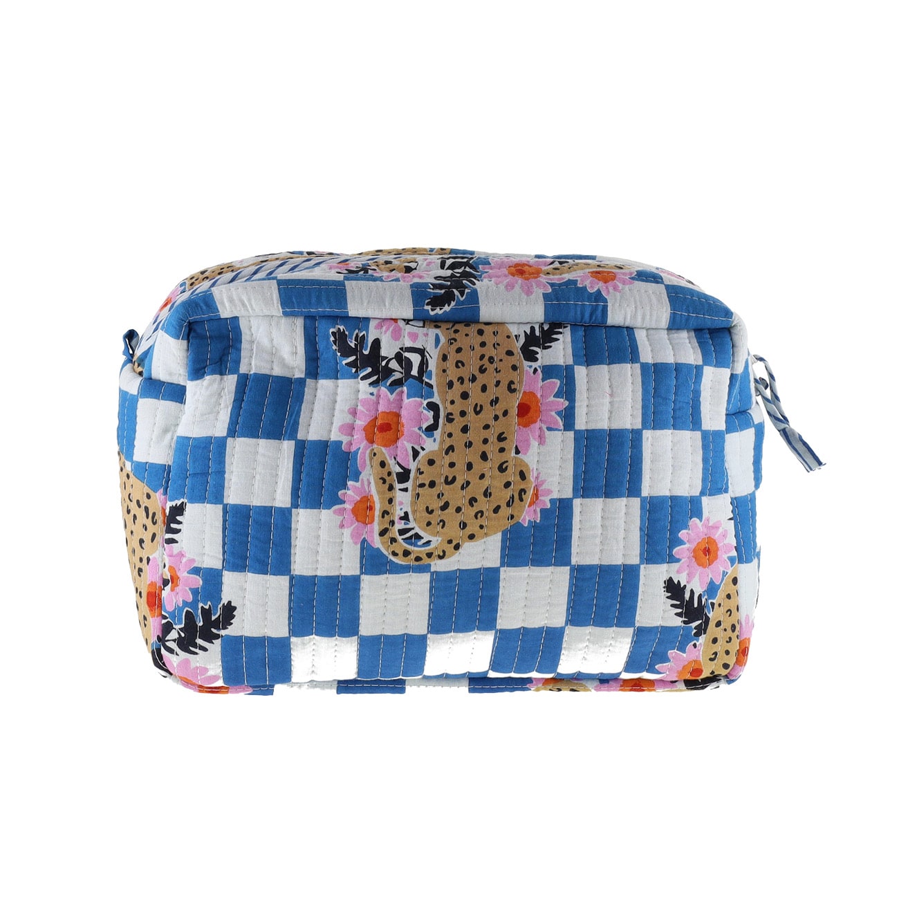 Vilma er en stor og rummelig toilettaske med små indvendige lommer til organisering og en udvendig lynlåslomme. Den udvendige lynlåslomme er skjult bag en dekorativ tungekant.